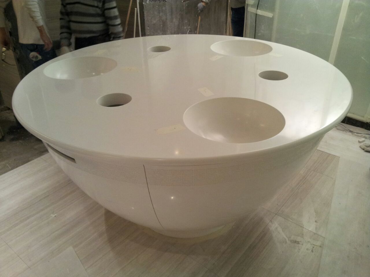 - 獨具匠心的人造石材料應用到酒店、醫療、餐飲等商業空間和住宅家居等領域,質地细腻無縫銜接的水槽,運用先進加工技術,制造出質地细腻無
